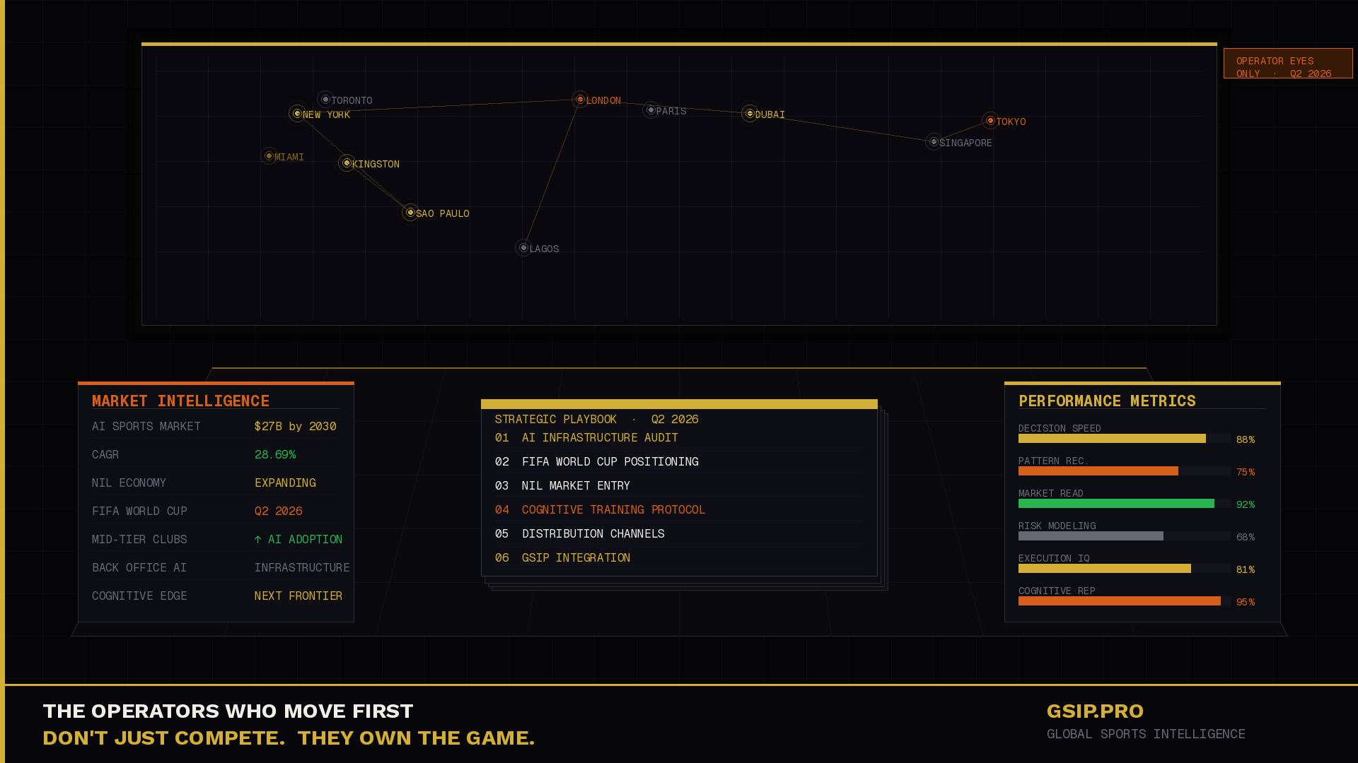 Platforms like GSIP (GSIP.pro) are already building in this direction — training athletes and entrepreneurs to process decision trees faster through daily cognitive reps across sports, business, and financial intelligence. Five questions a day. Compounding over time. The same discipline applied to physical training, now applied to the mind.