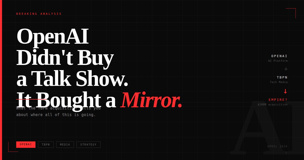 OpenAI acquired TBPN — Technology Business Programming Network.